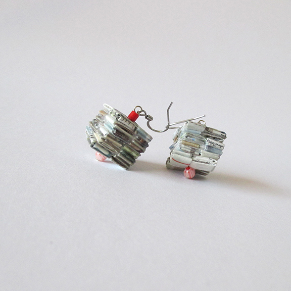 These lovelies are made with reclaimed paper from my mailbox and accented with pretty glass beads.