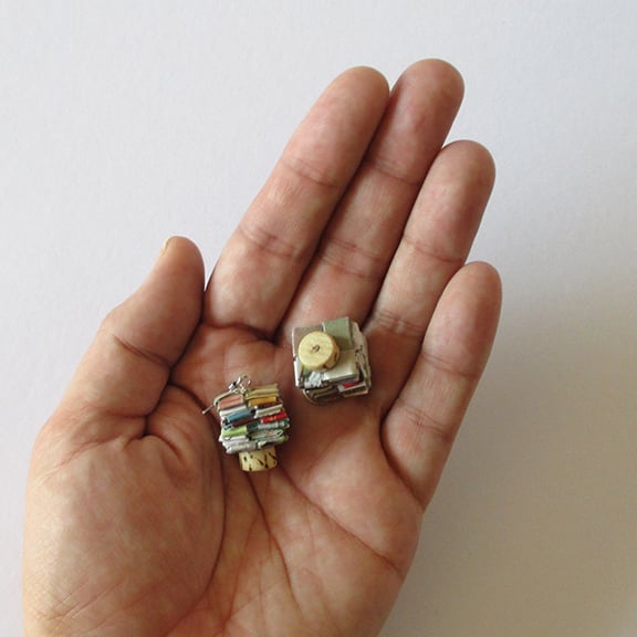 Oh the irony -- reclaimed paper earrings accented with wooden beads. Make an eco earring statement!