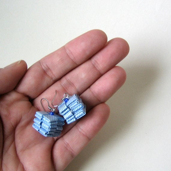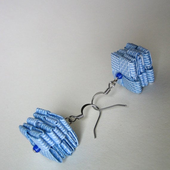 Blue Eco Earrings - Made By Hand With Blue Rescued Security Envelopes