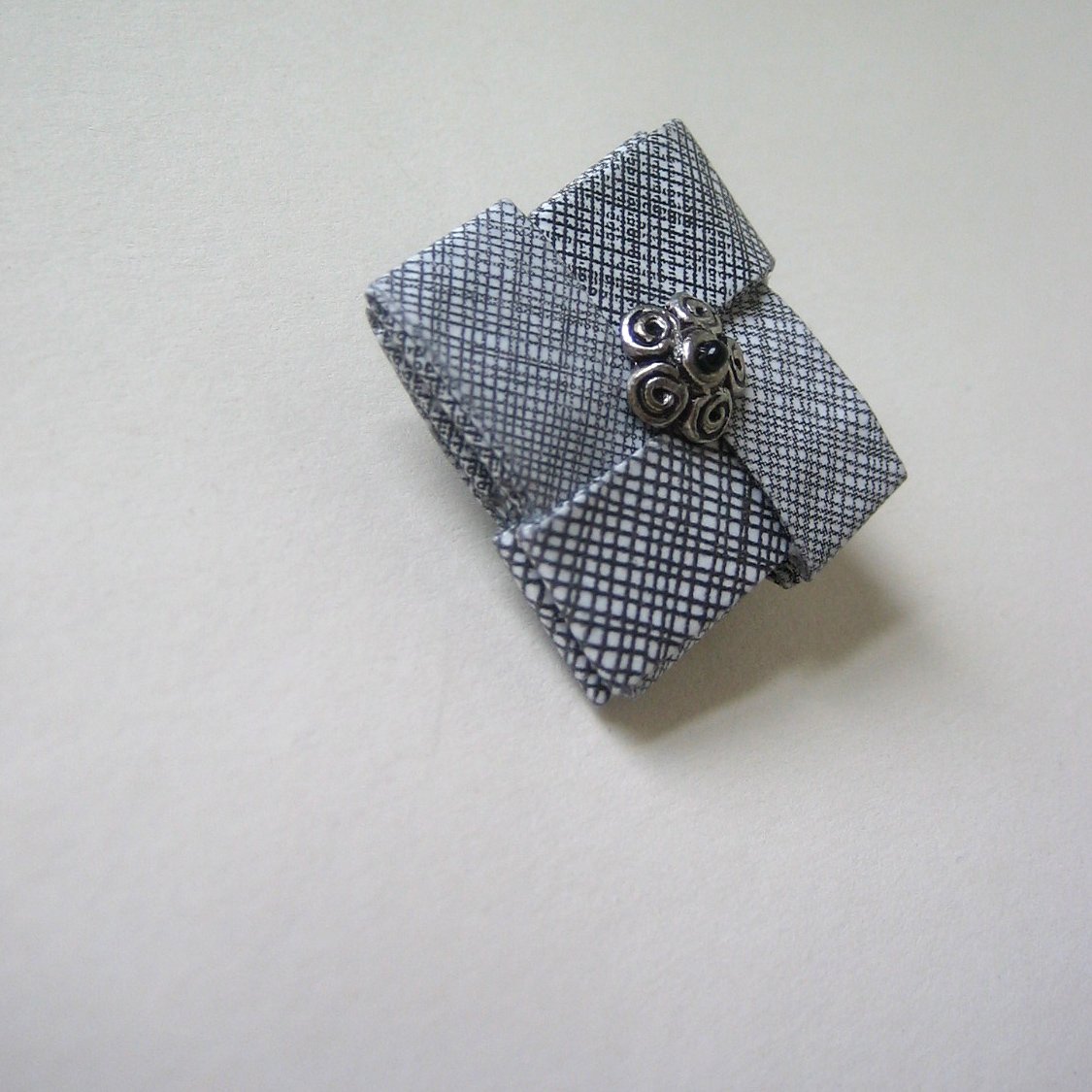 I carefully transformed this reclaimed security envelope into this monochromatic brooch that could add a little extra texture to your fave outfit. I love creating with paper from my mailbox. Have you paused to look at all the pretty security envelope patterns?