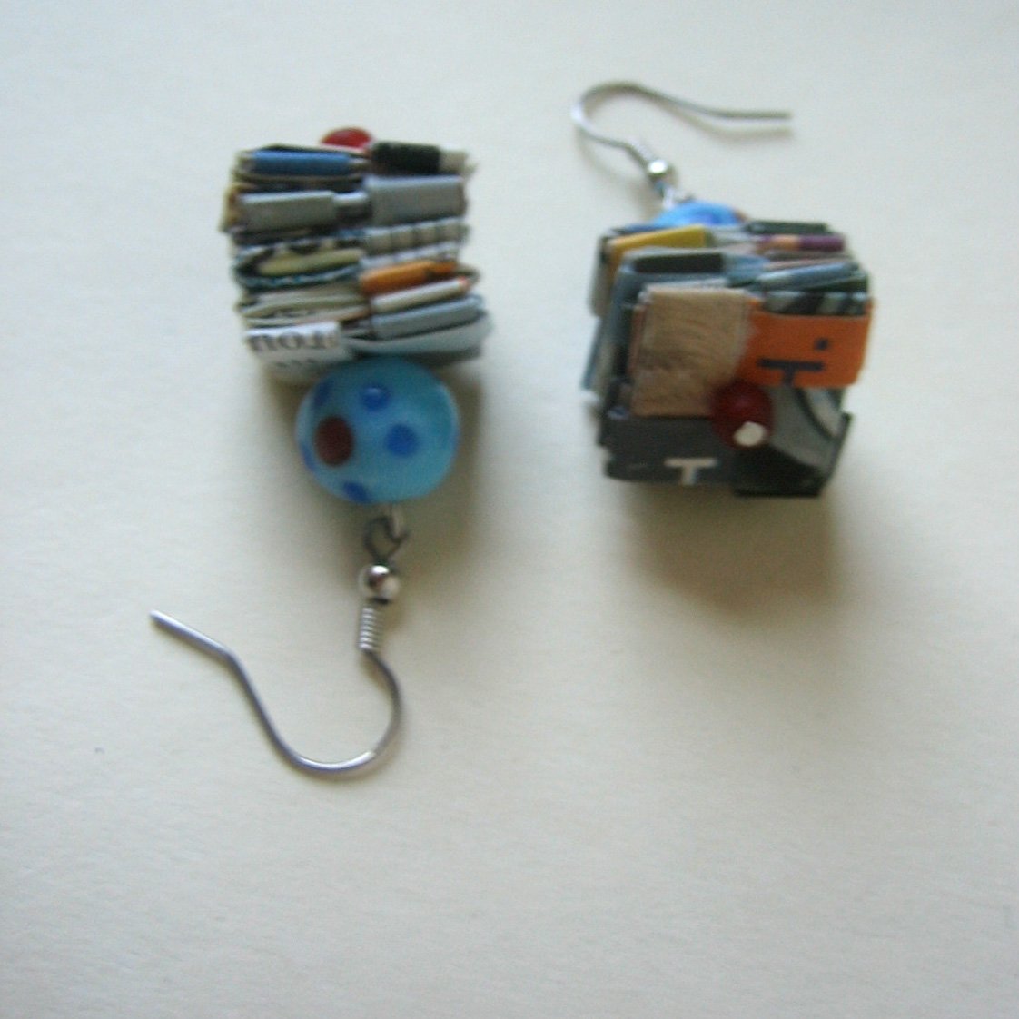 Eco Earrings - Junk Mail and Magazines Embellished with Blue Glass Beads