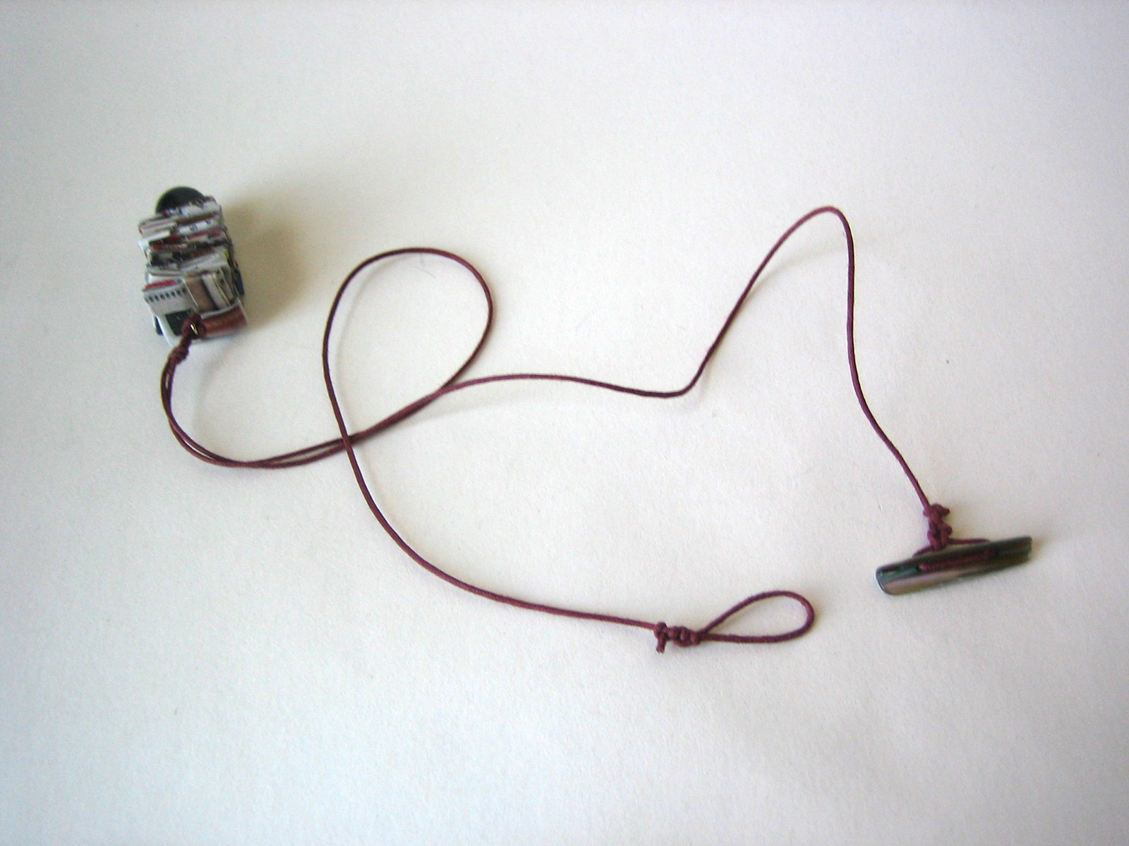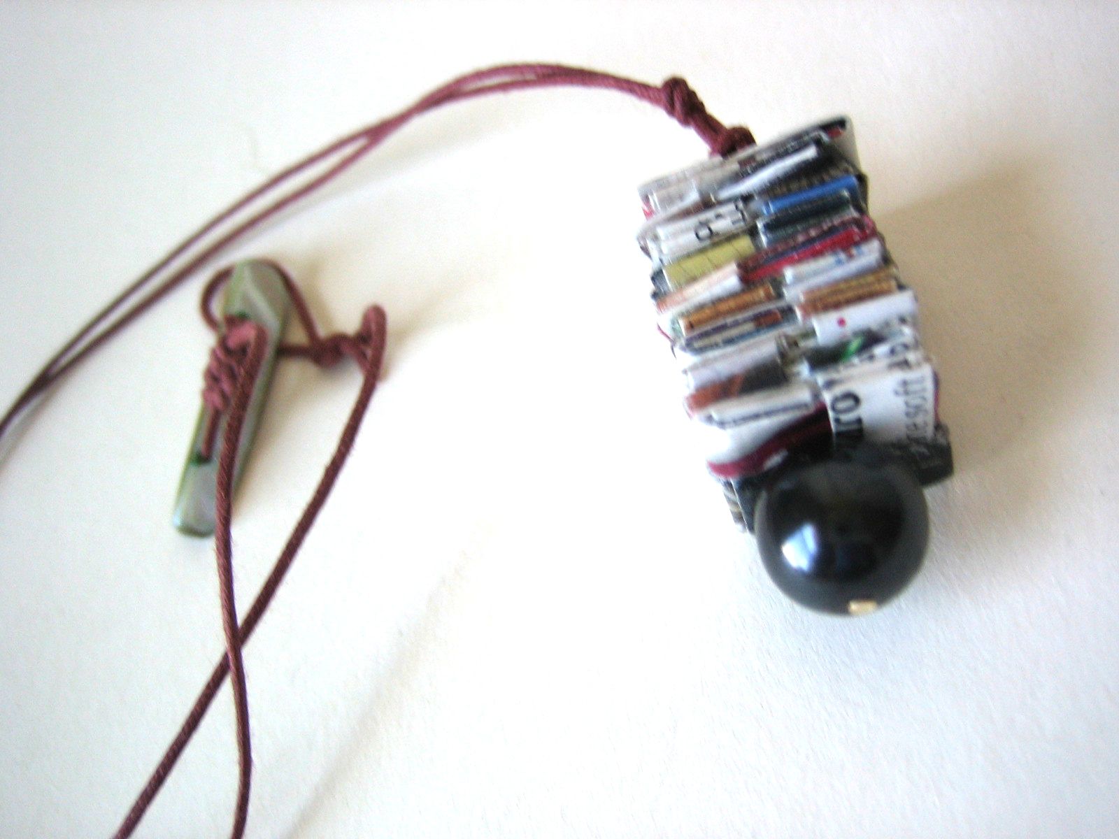 The brick red cotton cord will hug your neck and closes with a mother of pearl button at the back. I love paper and I love pearls - so finally they are together in this unique necklace.