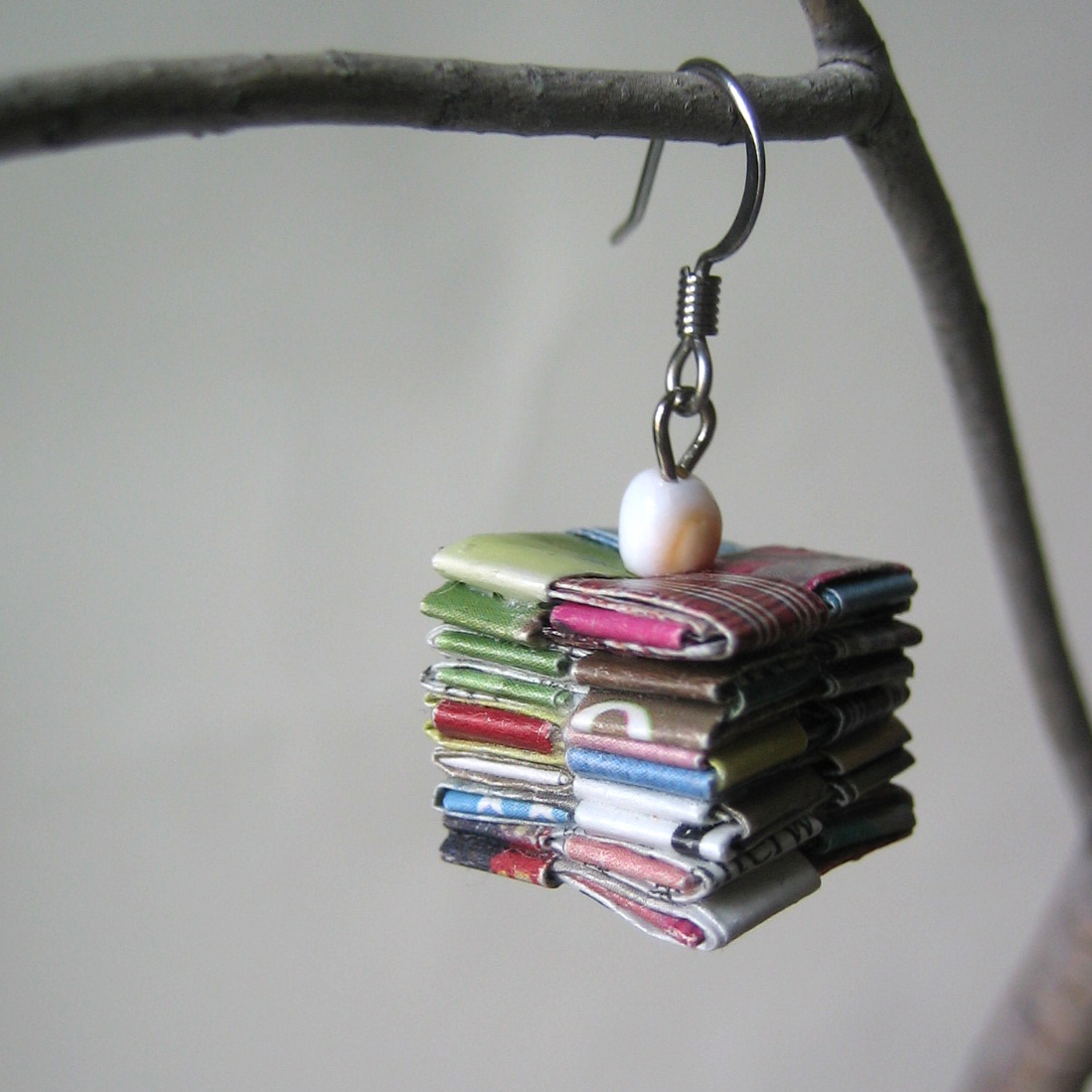 I have cut, folded and hand assembled each piece of these rescued folded paper ear bobs. They would make a lovely gift for an earth aware paper lover or a budding greenie.