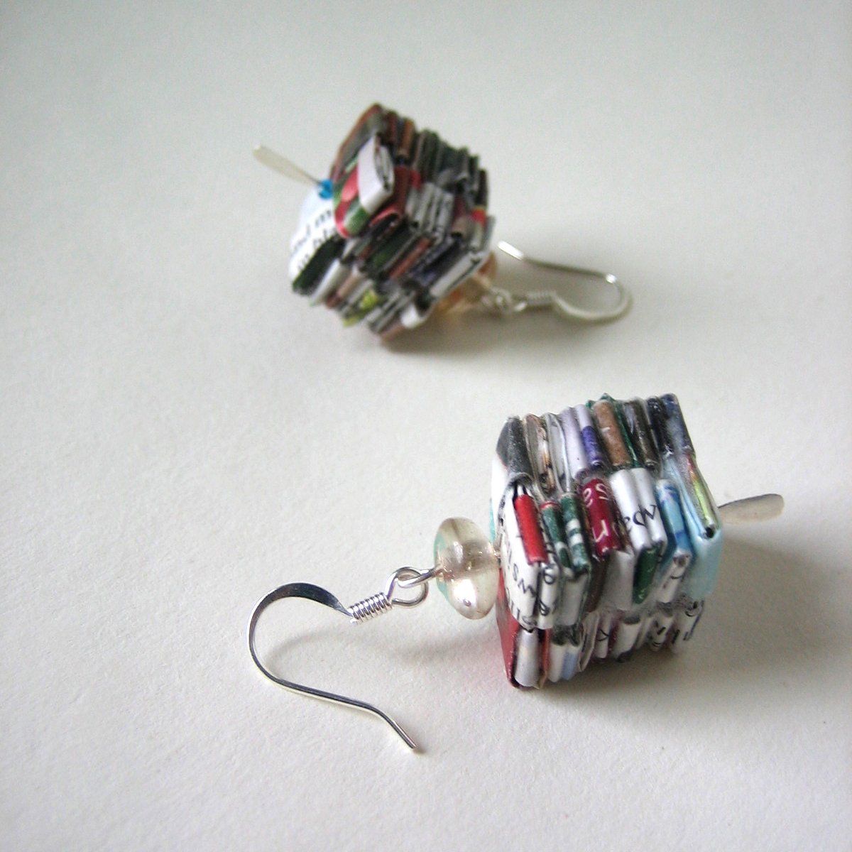 These rescued paper earrings are lightweight and made from the contents of my mailbox. Who knew junk mail could be made wearable?