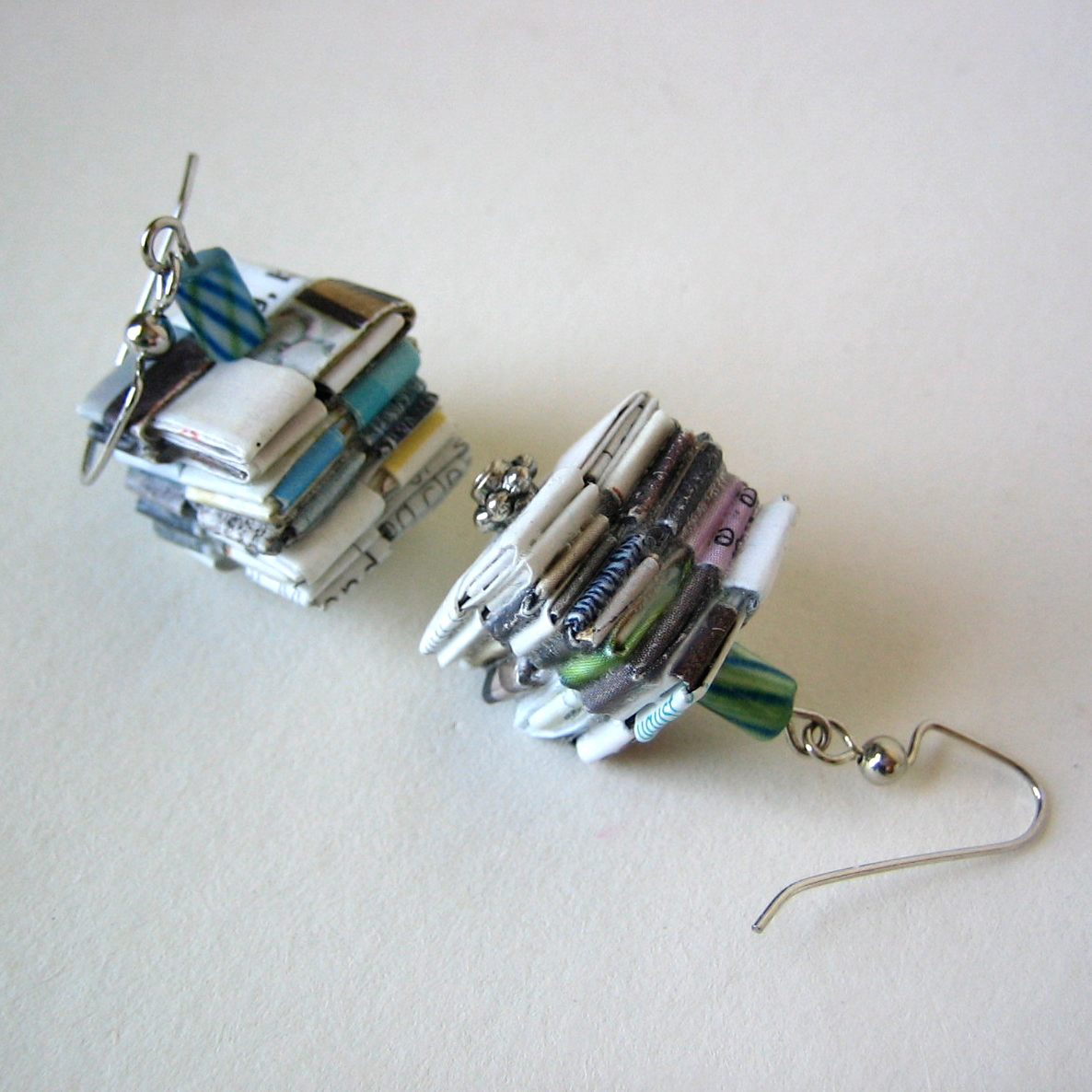 I think you'll enjoy these earrings in mermaidish colors. With the variation of color, these could go with just about anything while showing your support for repurposing and green living!