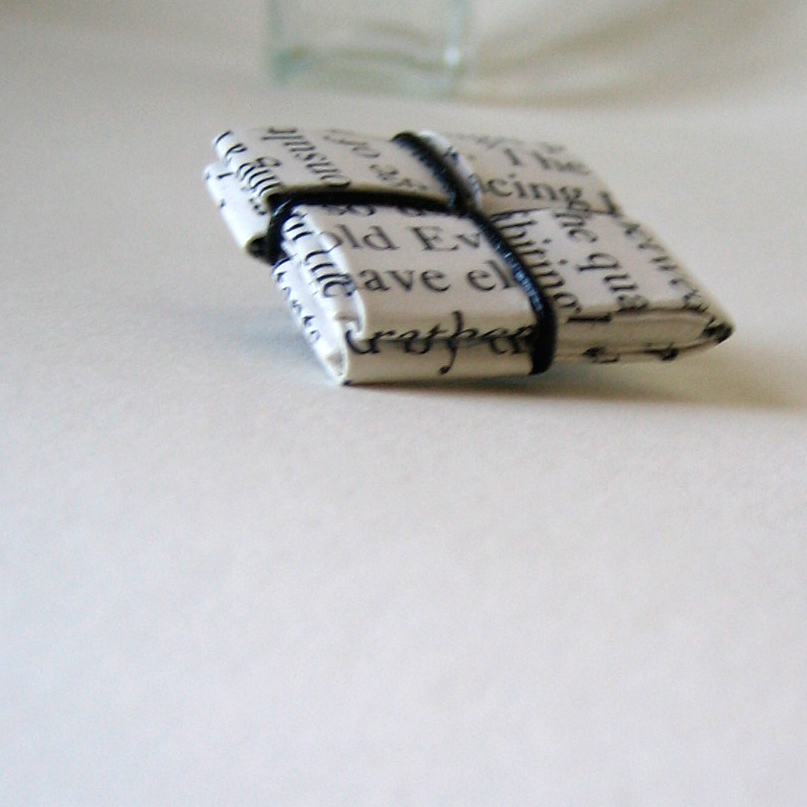 I couldn't bear to see book's pages go to waste. Part of this book was damaged, so I rescued the salvagable pages to create some fun little wearable goodies.